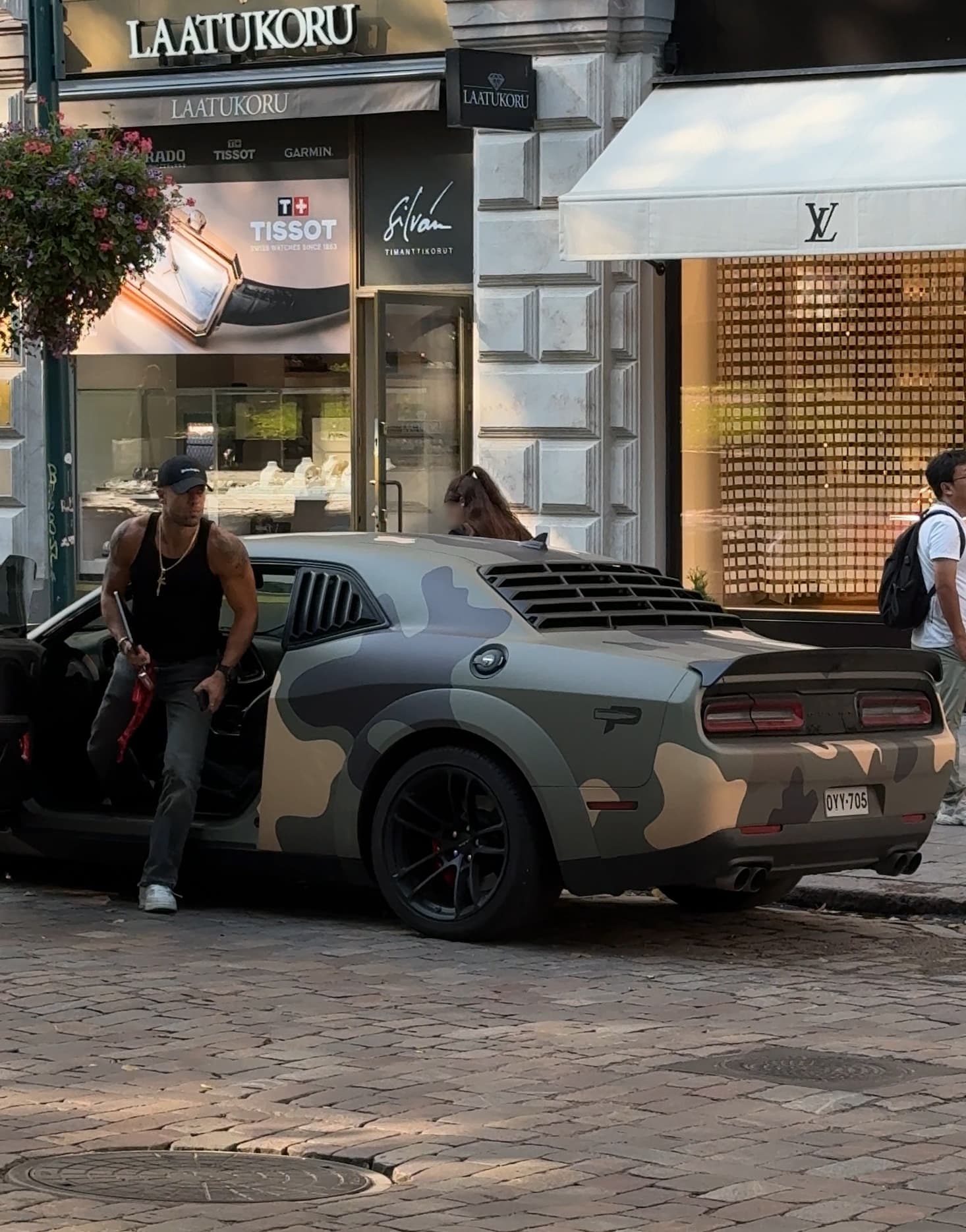 Erikoisjoukot -realitysarjasta tuttu ex-sotilas, kuntovalmentaja ja sometähti Matias Petäistö kaasutteli komealla maastokuviollisella Dodge Challenger Hellcat -muskeliautollaan Helsingin Pohjoisesplanaadia pitkin brunetten mysteerinaisen kanssa.